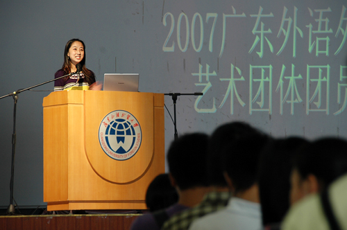 本网讯 广东外语外贸大学2007年艺术团团员大会于10月18日下午在南校区学生活动中心二楼隆重召开。与会的领导有校团委书记刘志军,副书记谢秀兰、何越晖以及团委指导老师涂颖。包括艺术团、管乐团以及合唱团在内的三大团的所有团员参加了这次大会。