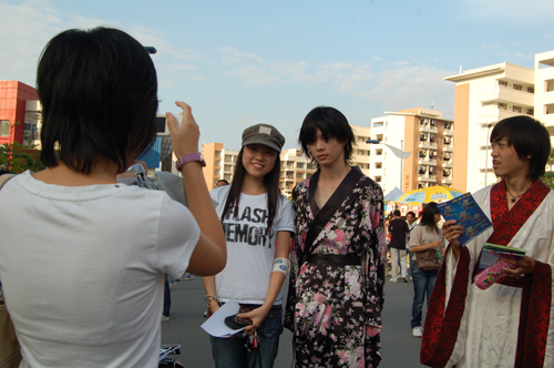 在熙熙攘攘的人群中,身穿各种服饰的COSER吸引了众人的眼球。动漫协会的Cosplay挑选了漫画“楼兰绮梦”“死神”和“银魂”中的角色。瞧,“左贤王冒顿”身穿黑袍红长裙,背贴着动漫协会的宣传单穿梭在人群中,成为大家拍照的对象。Movie Club 的主角“蜘蛛侠”与“白雪公主” 一起隆重登场,向大家派发书签。