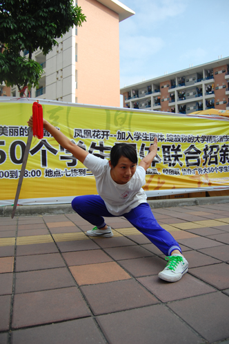 伴随铿锵有力的歌曲,武协以精彩的武术表演吸引了大群同学围观。他们舒展大方、动迅静定的长拳,柔和舒缓、圆活自然的太极拳等拳种,以及刀、枪、剑、棍等器械套路表演,博得了阵阵掌声和喝彩声。