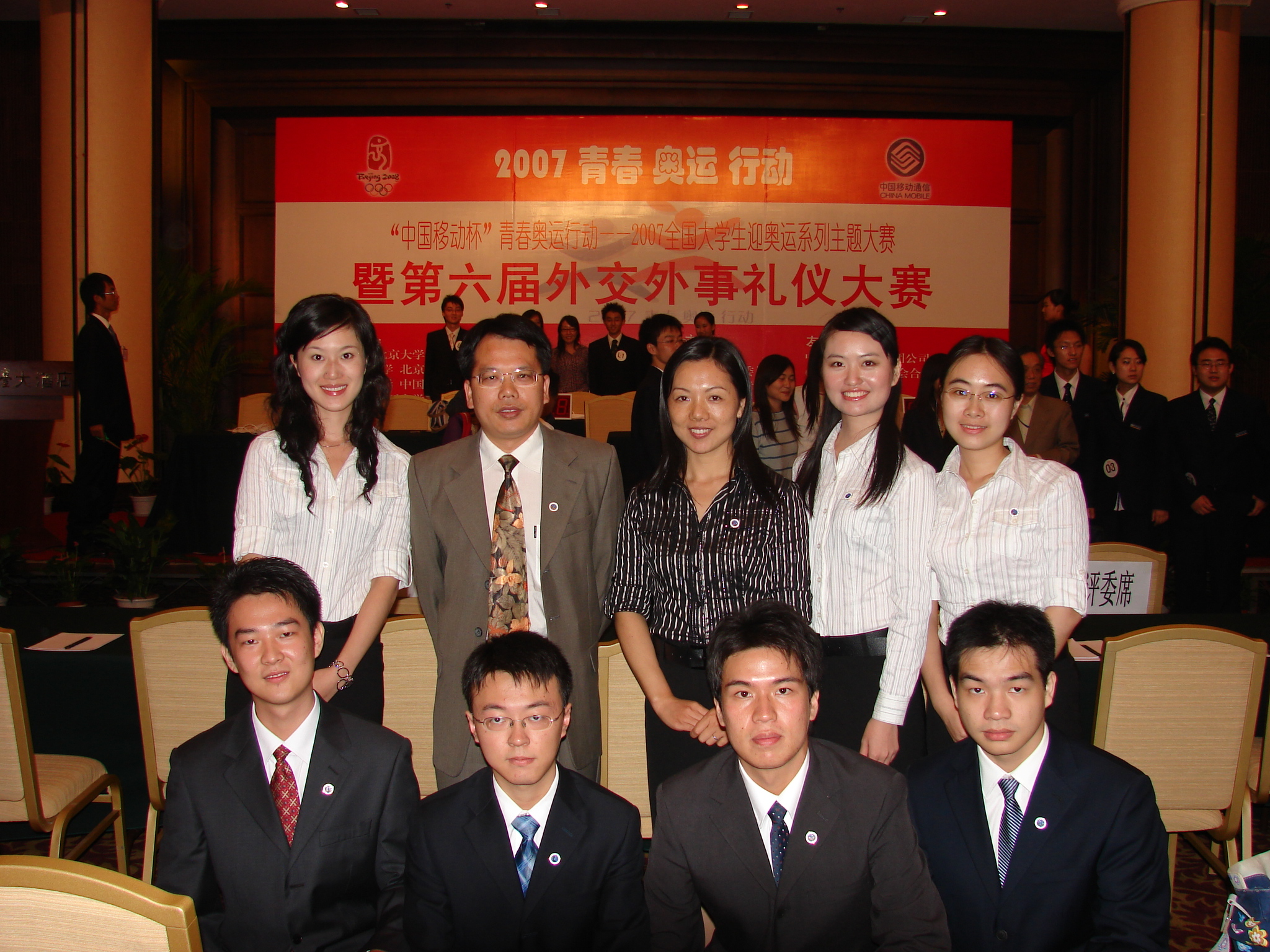 本网讯 9月22日至23日,在北京钓鱼台大酒店举行的“2007全国大学生奥运知识暨第6届外交外事礼仪大赛”的总决赛中,我校代表队尽展风采,获得了大赛的团队优胜奖。另外,法学院04级外交学专业的邓飚同学还获得了大赛的“最佳礼仪奖”。