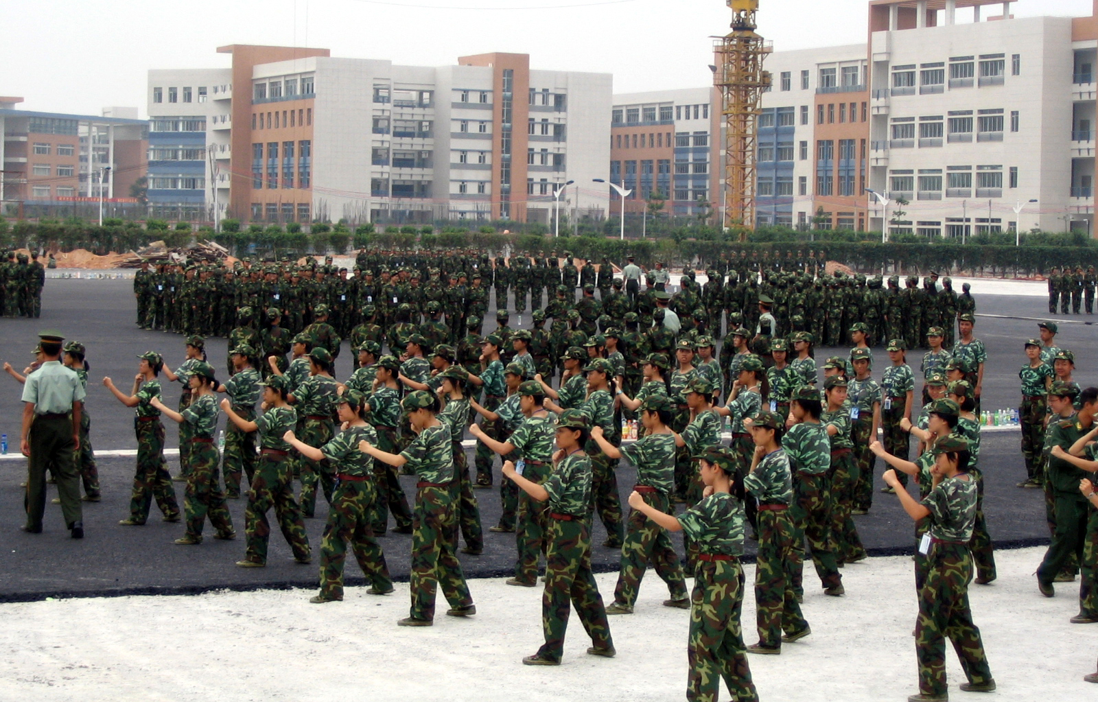 那个时候,校园里的小树都还刚栽下去不久,枯瘦如柴,完全起不到遮荫的作用。加上天气酷热,没有一丝风。新生们捂在军装里,如同蒸笼里的包子,无法呼吸。阳光像海浪一样,一浪接着一浪翻滚着,脸上的皮肤绷得紧紧的,毛孔大张却呼吸不到新鲜空气,莫名其妙窒息般难受。