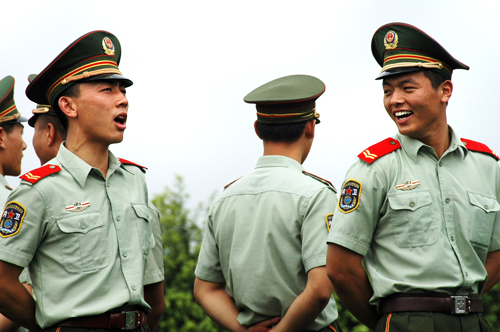 休息时刻,教官们也一改严肃表情,与新生们“打成一片”。新生们总是争相向教官询问军队里的日常生活;也总是希望教官能时常“露一手”,耍耍最拿手的拳法;更总是在教官表演结束后惊呼“太厉害了!”、“教官好棒啊!”、“怎么练出来的啊?”……