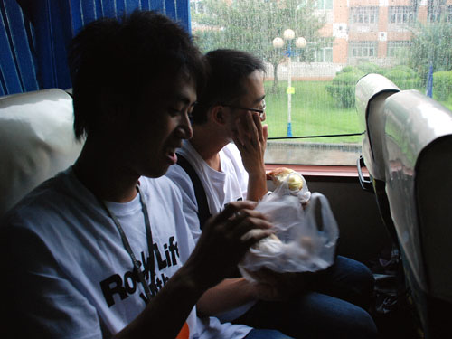 去车站迎新的路上:“没时间了,快吃!”