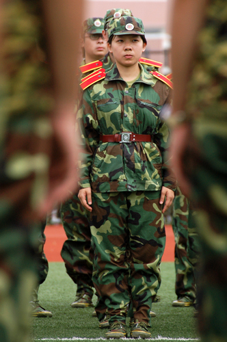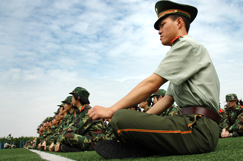 “四!三!二!一!”所有人中指紧贴裤缝,昂首挺胸地站着,年轻的教官穿梭在一片橄榄绿中满意地检查。