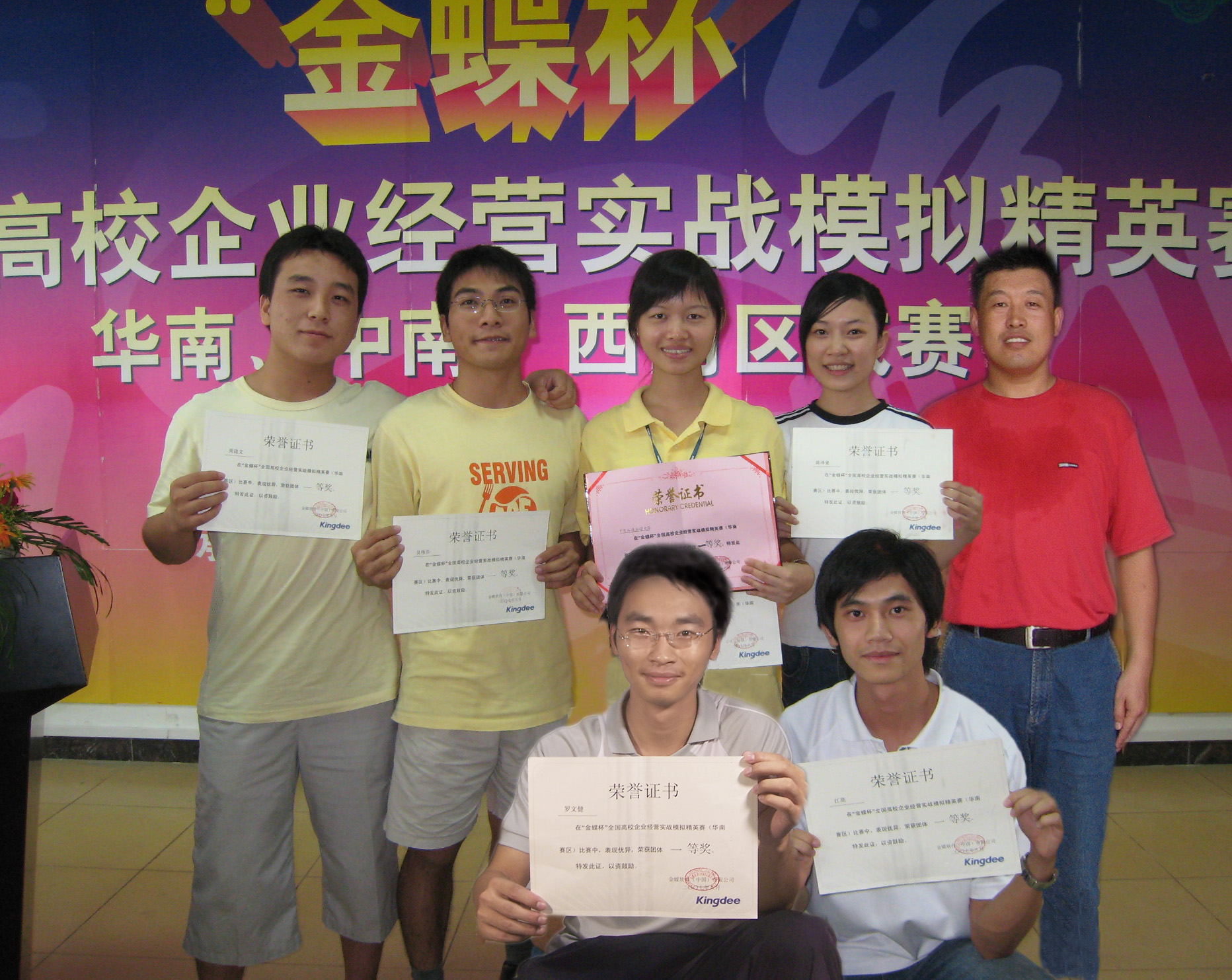 本网讯 由我校国际工商管理学院04、05级六位同学组成的参赛队伍在“金蝶杯”全国高校企业经营实战模拟精英赛(华南区赛)中获得了华南区“团体一等奖”,并顺利晋级08年四月份的全国总决赛。