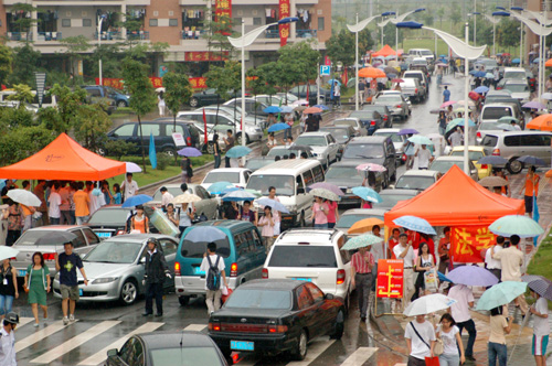 学校在各主要路口都竖立了指示牌,还有交警和校卫队员指挥交通,他们耐心解答前来问路的家长的询问,快速地安排好合适的停车位。另外,为了家长开车在生活区内走得更加顺畅,保卫处在之前做了大量规划,在生活区的中环和内环两个正门只给车辆进入,把出口安排在东西两边,这样就有效地避免了相互堵车的现象。