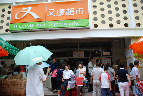 在超市内,虽然人较多,但秩序还是比较好。记者采访了超市的销售部经理,她告诉记者,今年他们在方便学生的服务上花了很多心思。除了在超市外摆卖的商品上明码标价以外,为了使新生和家长能够更快更方便地买到自己合适的商品,超市今年还请来了20位学生导购员对前来消费的同学家长进行指引。她还对记者说,今年新生家长的反应之热烈是他们意料之外的。