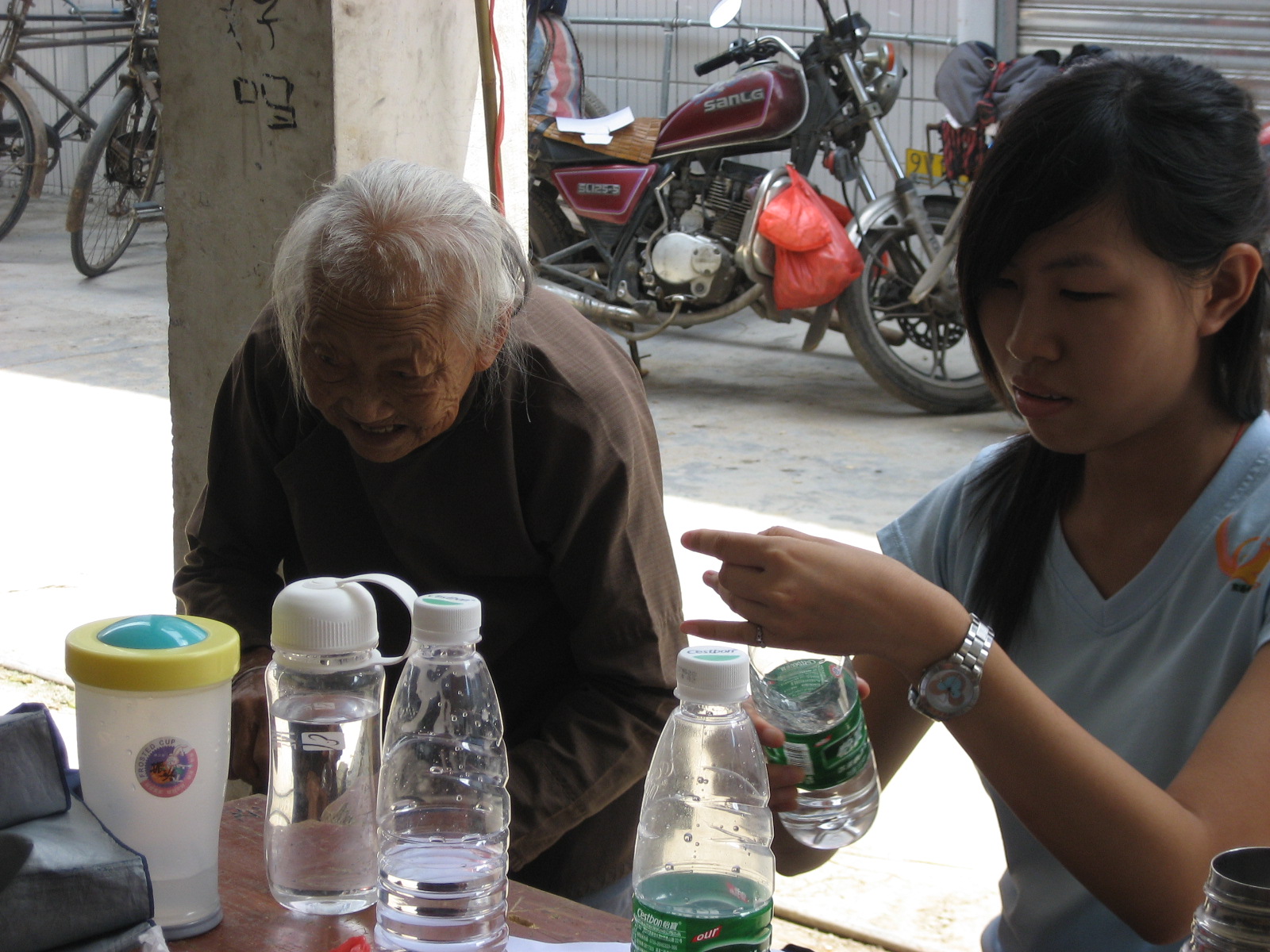 时间过去不少了,真正走到摊位前提问题的人还是不多,这让怀抱满腔热情而来的队员们多多少少感到一些焦急,一些失望!毕竟准备了许久,总希望能实实在在帮助到群众。于是更多队员出动了,再次到各个摊档与群众交流,一位卖腐竹、红枣等干货的老奶奶告诉我们,她家里的收入靠务农及这个小摊,虽然交税不多,但两方面的收入都较低,生活拮据。一位60多岁的爷爷,在市场里靠帮人把烟叶加工成烟丝挣钱,在他摊位附近不时有农民在等烟丝,他们或蹲着,或坐在小凳子上,衣服都很旧,个别甚至穿得很破,让人看了不免心酸。除此之外,也有遇上一些孩子。有的是还没上学,从小就在帮忙,有的是在暑假期间给父母帮手。很多村民反映,当地人收入低物价却很高,生活压力比较大。