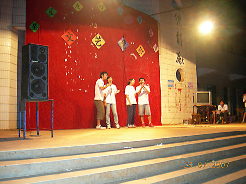 大约4点,一辆车停在了台前,所有人舒了一口气,好像一个重担从心头卸去。这是校长从镇上借来的整套音响设备,如果没有它们,我们所有的筹划都将付诸流水。校长满脸笑容的看着我们,会意地点头,大家心照不宣,都露出欣慰的笑容,似乎在传诵着什么……
