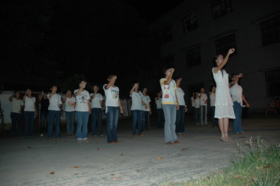 29日晚上,筹备已久的告别晚会似乎成了白垢这个宁静小镇的一个盛会。没有五彩绚丽的舞台灯光,没有先进完善的音箱设备,没有华丽漂亮的表演服饰,只有当地镇政府和学校领导的莅临,只有当地普通市民的热烈支持,只有附近三五成群小孩子的凑热闹,只有3个初三毕业班的全体同学真挚的心,还有我们下乡全体队伍成员投入的热情。