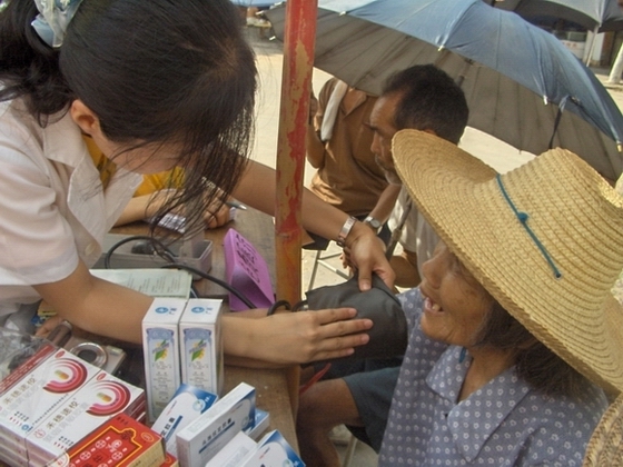 小时候曾一度梦想当一名医生,后来因为怕血放弃了。2007年暑期三下乡,医生来到身边,看到很多,学到很多。医者之道,仁爱之心。