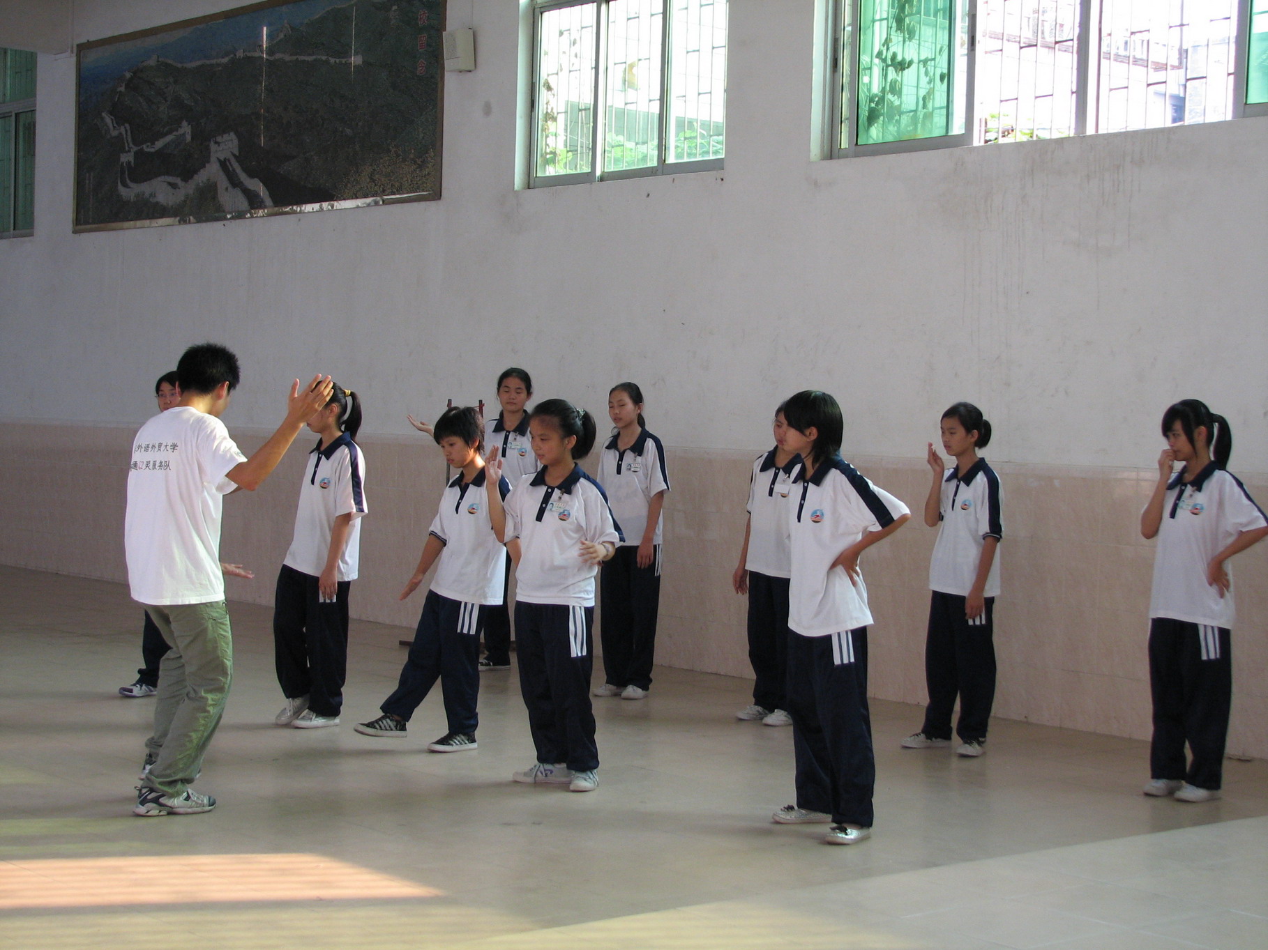 至于你嘛!说真的你还真适合做体育老师的!你的声音挺有震慑力的,而且你的太极耍得还不赖!我知道广东话你讲得一定很棒,但普通话那就要加强一点喽!体育课的那些活动都蛮不错的,蛮好玩的,你让我想起了我金色的童年。我觉得体育课上的兔子舞还是蛮好玩的,挺有趣。谢谢你们教会了我耍太极!那以后我不用到处拜师学艺了,太极在手,天下无敌!哈、哈、哈 ……