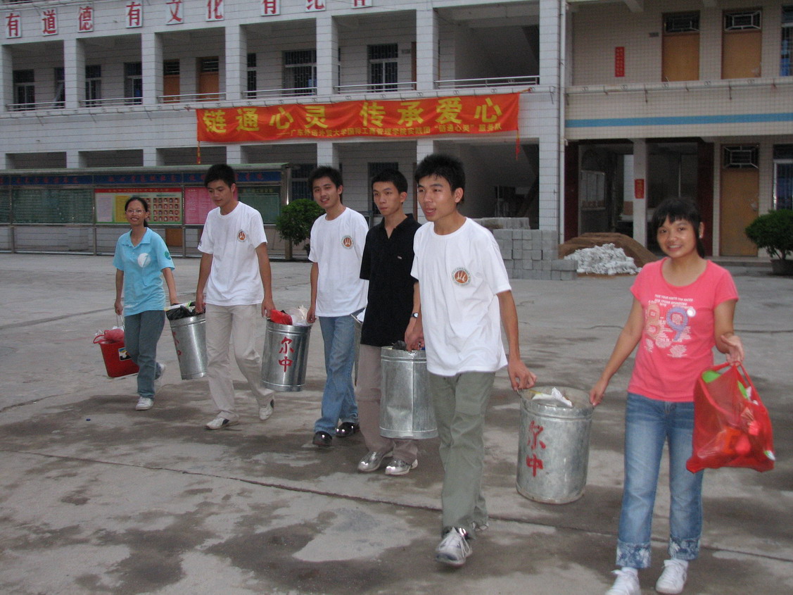 2007年7月11日到7月21日是我人生中最重要的时刻之一。作为人类的第三只眼,我,一台老老的佳能摄影机,跟随管理学院实践团链通心灵服务队来到了河源市紫金县尔菘中学进行义教调研。说真的,我这个“人”哪里没有去过,什么好风景没有看过,什么大场面没有见过。所以我有个坏习惯就是一般的风景、一般的人、一般的事我都从来不放在眼里。