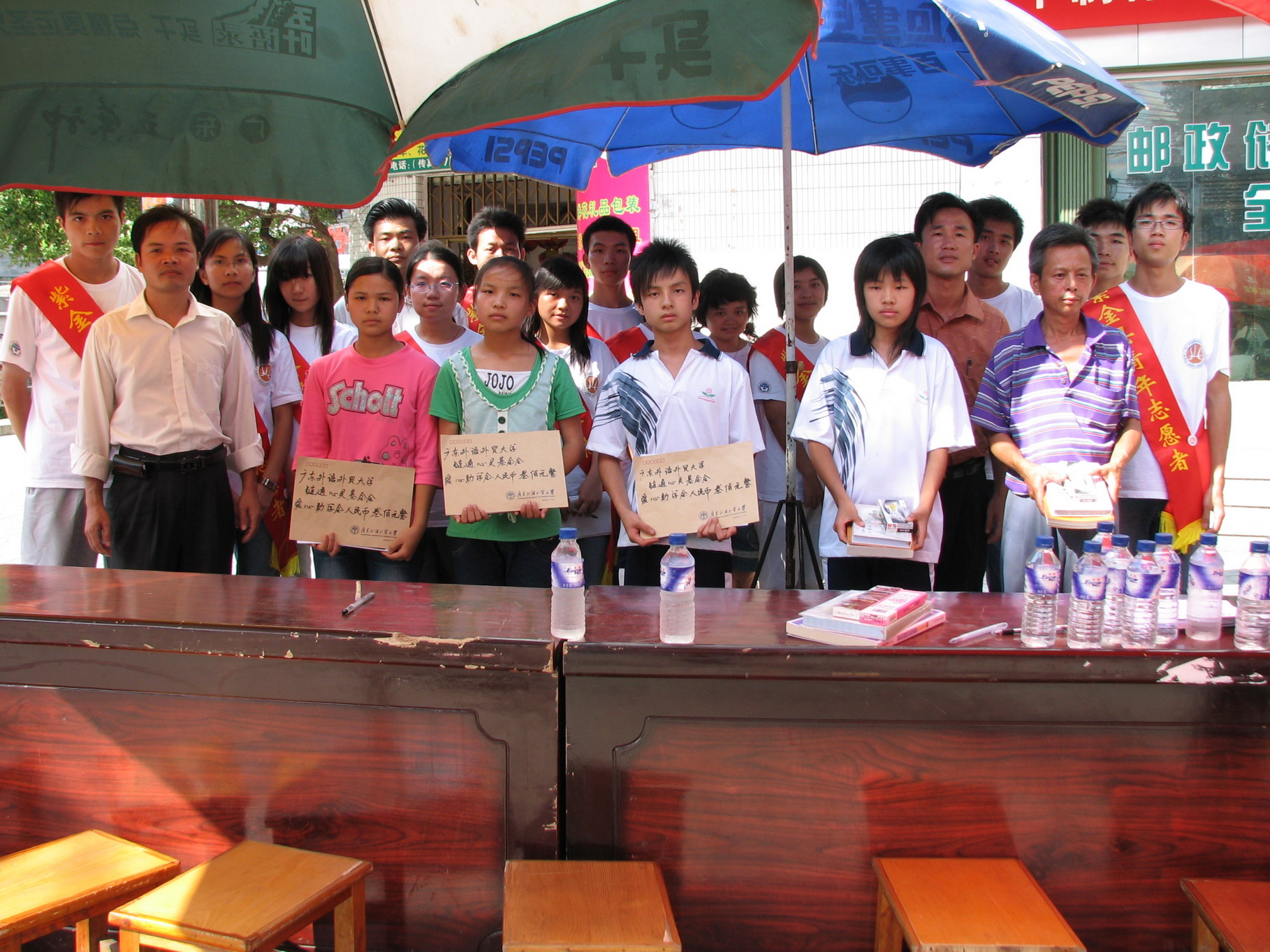 服务队的队员为了再给贫困学生多点资助,在下乡期间都点点滴滴节省,加上之前在物流一班募捐到的543元,他们一共捐献了1050元,但那都是他们自己吃饭或者喝水节省到的,但是我还是看到了他们脸上满足的表情,那一种爱的表情。
