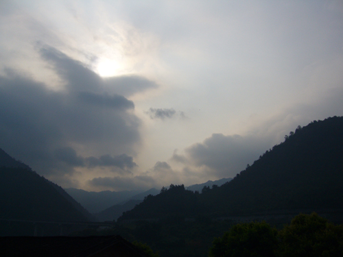 晨曦,朝阳在大山的雾霭中展露笑脸。新的一天,我们开始用心灵拥抱这里。