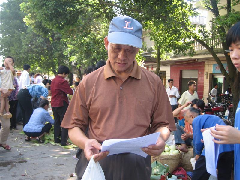 八点半左右,现场的布置工作基本完成,普法组的每位人员都正襟危坐,严阵以待。但是,“万事开头难”,我们等了接近二十分钟,都没有一个人过来,人们对于我们的活动都只是抱着看热闹的心态。我们开始着急了,派传单的人反映说,当地的人普遍都认为这样的普法咨询没什么用,况且他们要赶集,没时间理会这事。但是这一困难并不使我们的热情退却,终于,在机动组组长积极努力下,一位大叔带着羞涩的表情,坐在了咨询的位置上。