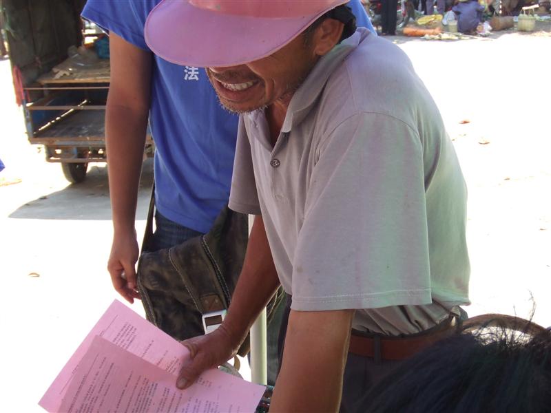 普法咨询当天,大部分的咨询果然都围绕着土地问题,如对土地征收赔偿的疑惑、对土地承包问题的咨询等。TOGETHER的队员们都耐心地倾听了农民们的问题,解答他们的疑惑并尝试提供解决的途径,大多数前来咨询的农民对我们的服务都感到满意。