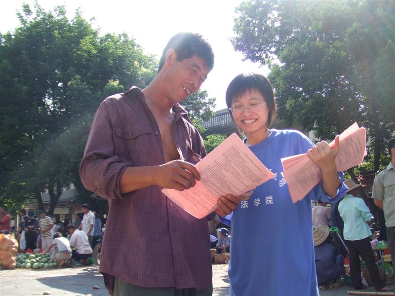 在普法中,我们遇到了为数不少当自己的利益受到损害时却不知道怎样维护权利的农民。当听到我们的解答后,他们都感叹万分。“唉,我们这些农民没什么文化啊。那个时候根本就不知道遇到这种事情能够怎么办,你们大学生要多一点来这里啊!”这句话,对于我们队员来说已经不算陌生,调研、普法、派传单时都会听到,这句话背后有许多无奈和心酸的故事紧紧地缠绕在我们的心头。
