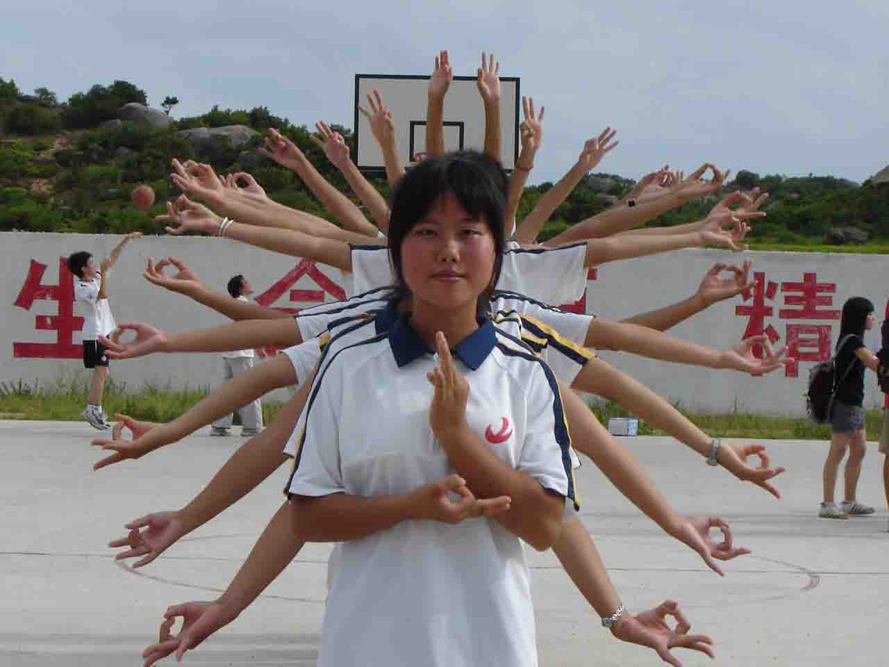 第一个游戏看似容易,只是自我介绍,并做出自己标志性的动作,然后就抛球喊出对方名字,让对方做出动作。但游戏开始,大家只是低头细声说出自己的名字,动作也拘束无创意。但经过老师们对于自信重要性命与表现机会的难得性的鼓动后,同学们的积极性明显提高,声音雄亮,介绍有特色,动作逐渐夸张。