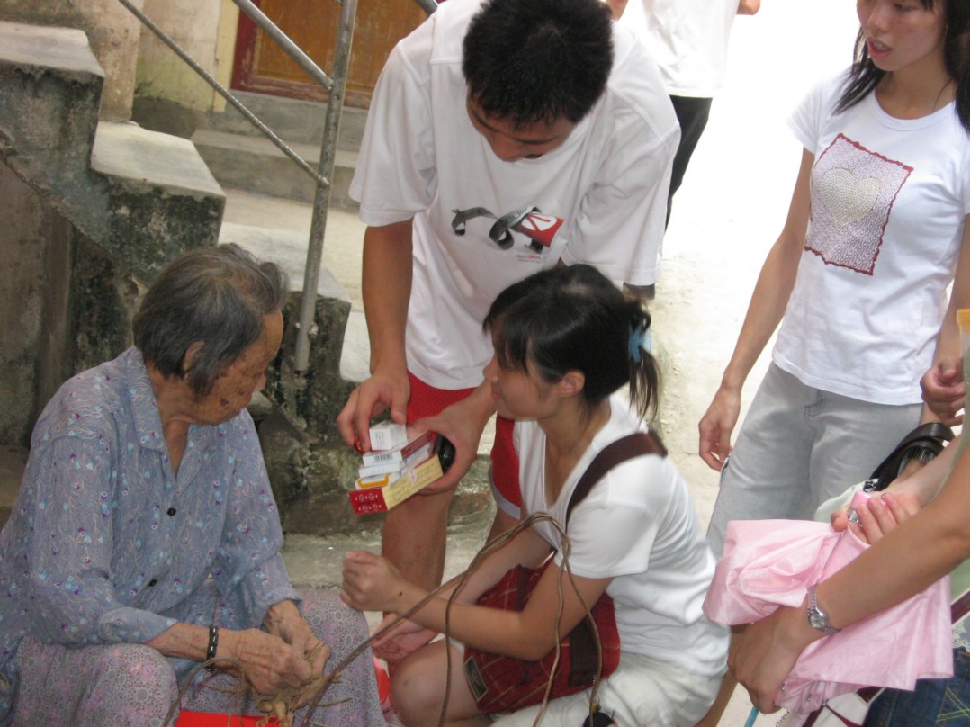 老伯的健谈,向我们展现了国家、乡村和他的生活多年来的变化,那是一堂生动的讲课,让我们对老人知道更多,了解更多。而一间在更深处的房子,就使我们看得更多,感悟更多。一间小小的平房,屋顶是交错的稻草和瓦片,一个个狭小昏暗的空间,就是老人们的家。在我们来的时候,碰巧有一位老人家生了病,生活无法自理。生活艰苦如斯,是我们日常生活少见的。也许还有比这更惨淡的环境,但较之映入眼帘的真实,那些平时所听闻的惨淡环境,反而变得更不可理解,这应该是视觉的冲击比道听途说来得更实在吧。