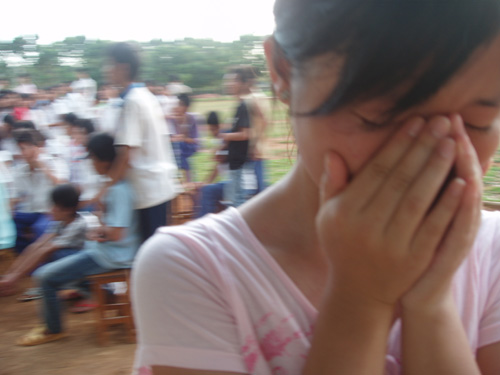 她上台发表感言时表示:“这是我20年来最难忘的一天,因为有你们……”正说到动情处,台下突然一阵骚动,只见所有学生的目光都朝着饭堂方向的树丛。一位男学生从中跑出来,直奔台上把摘得的三朵鲜花献给了老师。不过极度浪漫的鲜花中竟然藏着一条大青虫,看来“微笑天使”的魅力果然够大,连青虫也按捺不住跑来给她庆生。