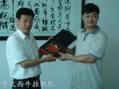 许国彬代表学校赠送纪念品