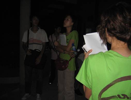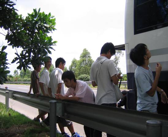车跑到半路是撑不住了,在高速公路上抛锚了。很多队员们都下车躲在一边等司机修车。我没有下去,觉得肯定很快修好的。我从心底里抱怨着路途多舛,结果在炙热的高速公路上苦等了两小时后,惟有拦截路上载客的小巴送我们去金塘镇。来到时已到晚饭时间,下午的计划都得推迟,重新安排。
