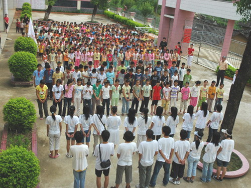 本网讯 广东外语外贸大学2007年学生暑期“三下乡”社会实践活动首支出发的管理学院“庆丰·梦想”服务队于7月2号中午从南校区正式出发,前往河源市紫金县龙窝镇进行为期12天的调研和义教活动,并在庆丰小学设立奖学金。服务队由05级财务管理一班及物流管理的24名同学组成。
