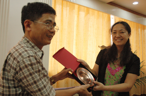 随后,双方互赠了纪念品。代表团一行在周东兰的陪同下参观了校园。据了解,回国后,越南代表团将就本次来访进行讨论,并商量与我校的合作事宜。