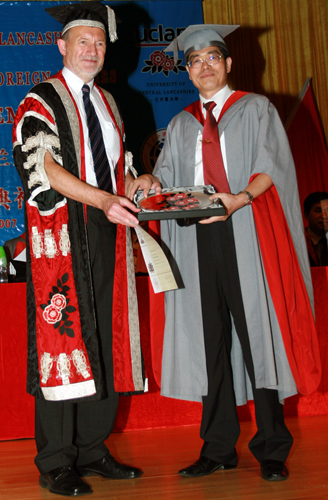 典礼中,还举行了为徐真华教授颁发兰开夏大学名誉博士学位证书仪式。