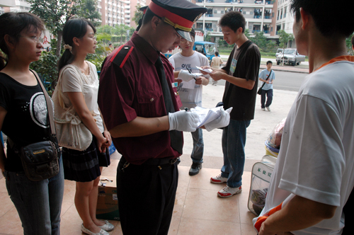 7月1日上午六点半,天已大亮,搬迁工作正式开始,大家忙着把一箱箱行李搬到校道上,等候运货车,七栋八栋宿舍楼下面人群熙熙攘攘。保卫办派出十名校卫队员,六点半准时到岗,在行李区巡逻,维持现场秩序,甚至常常帮忙搬运行李。