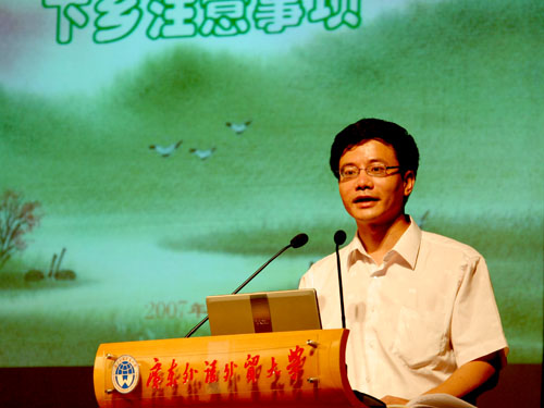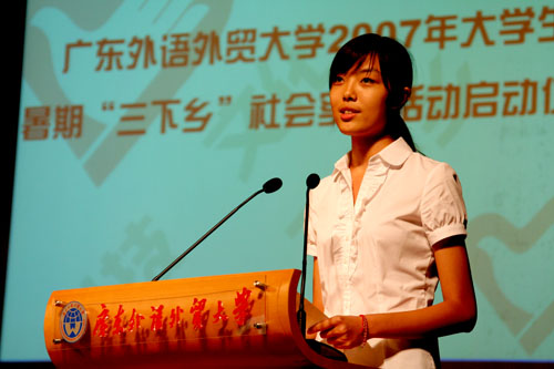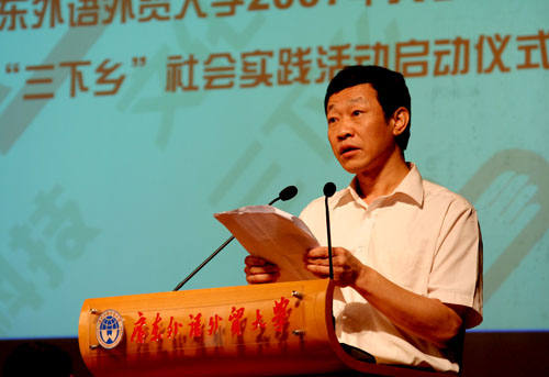 本网讯 7月2日上午9点,广外大2007年大学生暑期“三下乡”社会实践活动启动仪式在B8学术报告厅隆重举行。活动由校党委组织部、宣传部、学生工作部、校团委、马克思主义理论部主办。校团委副书记何越晖主持。