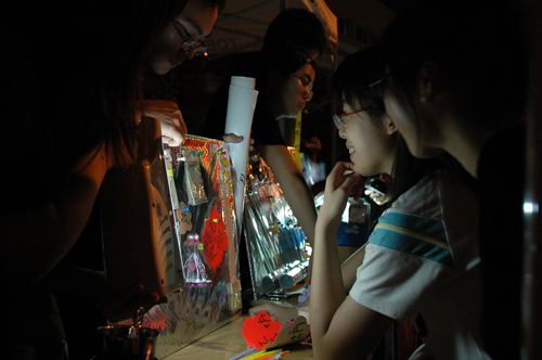 什么是创新?什么是青春活力?新闻学院的摊位给出了最响亮的回答。在精心装饰的可爱店铺里,两位可爱的女生卖起了COLOURFUL的女性内衣,无疑是当天回头率最高的摊位了。当被记者问及是否担心别人眼光和看法时,两位女生笑着说:“我们的商品都是亲自去挑选的时下最流行的款式!不敢买我们产品的同学只是观念上的问题,我们对我们卖的东西非常有自信!”