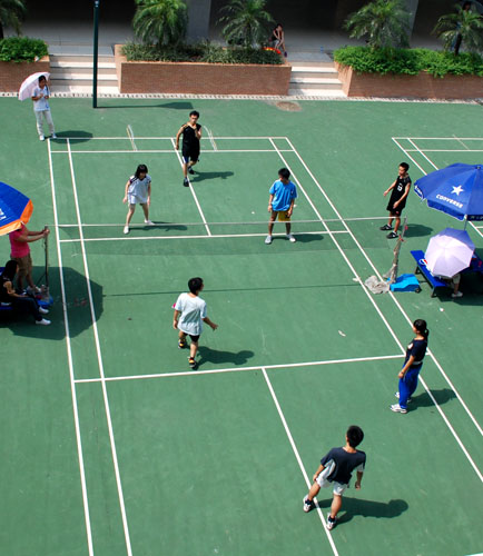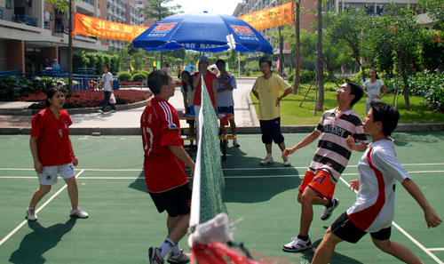 本网讯 6月2日,由广外大毽球协会承办的“迎大运会”第三届广外杯毽球比赛在南校生活区七八栋之间的羽毛球场火热进行。本次比赛由校体育部主办、各学院学生会体育部协办。