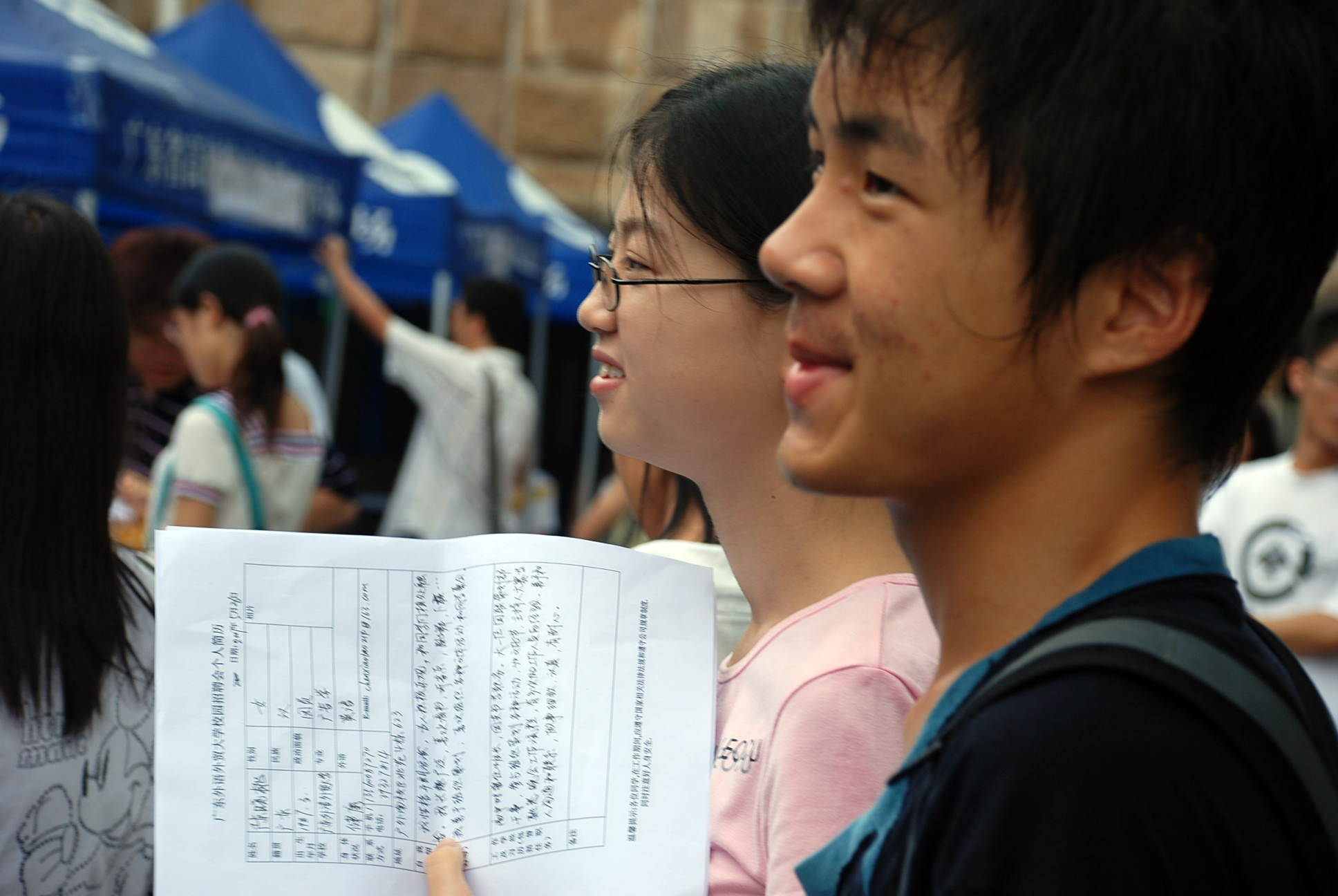 拿着简历等待面试的同学