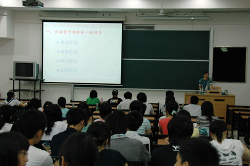 信息学院副教授张立新为同学们提供了一次内容丰富详实的调研培训,许多实用的知识技巧让众多正在准备下乡调研课题的同学受益匪浅,譬如要注意农村的作息时间,入户调查尽量选择在该地晚餐时间后的半小时,而机构调查则避免周一与周五下午;要注意提问的长度,“七分钟是陌生人的忍耐极限”等。同时,调研选题是现在大多数处于三下乡准备阶段的同学所关注的热点问题,张教授所提出的选题原则为:需要、科学、创新、可行。