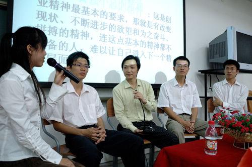 本网讯 5月24日晚,由广外学生创业促进会(筹备中)、云山创业园、广外自强社联合举办的“创业大学,自强人生”论坛在我校南校区教学楼C208举行。数位创业师兄与大家分享了创业经历。除了我校对创业充满热情的学子,中山大学创业社、广工创业俱乐部等兄弟院校创业社团也参与了此次论坛。