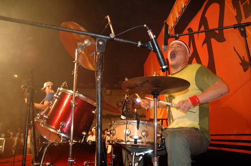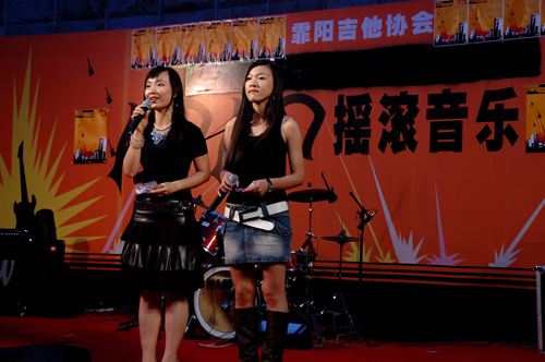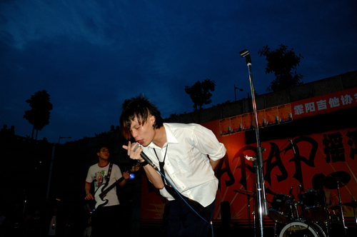 唱响当晚第一首歌的是血蝴蝶乐队,他们激昂的歌声响彻一望无际的黑夜,精彩的表演使现场的观众欢呼声不断。第二个出场的DownTown Monks乐队则带来了一首英文歌曲。歌声柔美而富有节奏感,穿透微薄的空气,使现场又增添一份惬意。