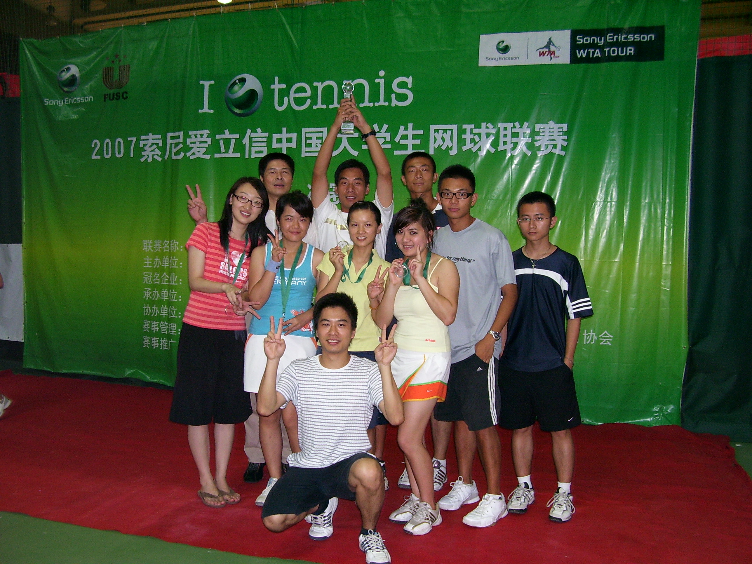 本网讯 5月26日至27日,2007索尼爱立信全国大学生网球联赛南区决赛在华南理工大学五山本部举行,我校参加了甲组男子团体和女子团体的比赛。女子团体力挫劲敌,勇夺冠军,男子获得第三名。女子网球队代表南区女子甲组于6月下旬前往北京参加全国的总决赛。