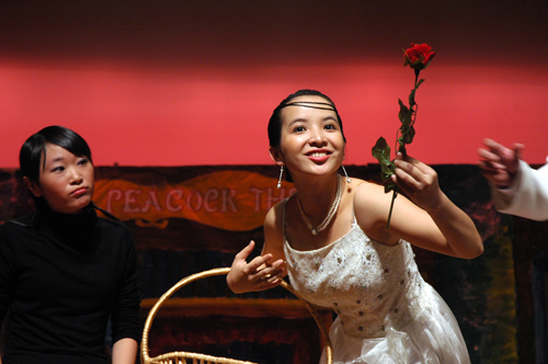 当晚拿奖最多的要数05国贸6班的《窈窕淑女》,此剧分别拿下最佳男女配音、最佳女主角以及大赛二等奖。粗俗可爱的卖花女接受了一位语言学家长达六个月的言行训练,最终她成为了一名举止优雅的淑女,并赢得了语言学家的爱。女主角丰富的面部表情以及调皮吐舌头的动作令大家忍俊不禁。剧中卖花女的华丽变身充分展现了演员们的演技和实力。结尾时,语言专家向女主角送上玫瑰与钻戒的浪漫场景,引得在场的女生羡慕不已。