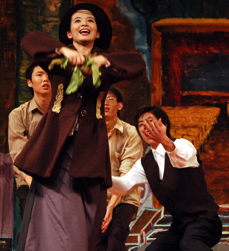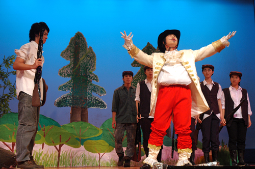 狄更斯的经典之作——《双城记》也被搬上了舞台。05金融二班节选了一段发生在法国大革命时期的浪漫爱情故事。其中,两位男主角Charles、Carton在监狱里的互不相让、情绪高昂的对手戏着实让观众惊叹了一阵。Madame Defarge的扮演者李卓莹激烈的言辞,夸张的动作,丰富的表情,充分表现出了法国底层劳动人民对压迫的不满,对现状的控诉和反抗。其出彩的表演也为她赢得了本届最佳女配角的奖项。