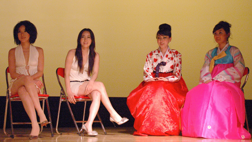 韩国名模团在台上与同学们愉快交流