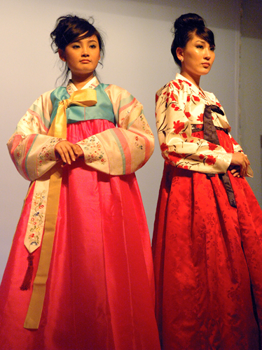 当韩国模特们褪去西洋服装,换上韩国传统服装表演,观众又领略了一场视觉上的盛宴。华丽的短上衣搭配优雅缤纷的的长裙,衣服上明艳独特的刺绣,在模特们的演绎下,更加华丽动人。