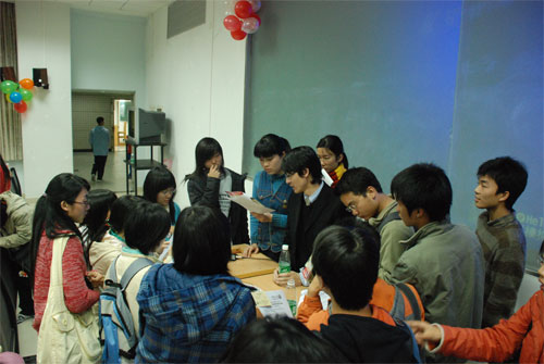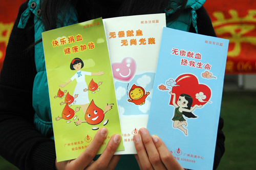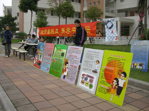 本网讯 4月5号和6号两天下午,在南校四栋楼下的校道上举行了一场“献青春热血,展学子风采”的大型献血知识咨询活动。此次活动由管理学院06级物流人资系、小谷围团工委和广州血液中心携手举办。