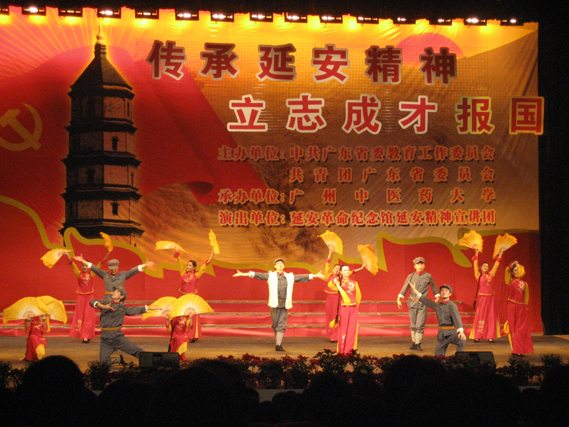 本网讯 2007年3月26日晚上8:00,由中共广东省教育工作委员会、共青团广东省委员会主办的“延安精神广东巡回宣讲活动”主题晚会,首场在广州中医药大学举行。