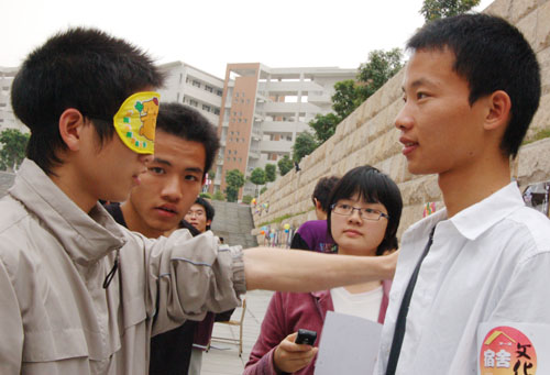 下午2点,开幕式正式开始,为“构和谐之家,建和谐社会”,信息学院用宿舍文化节来诠释,现场的蒙蒙细雨未能阻止信息学子的脚步。一首《怎么办》撩起同学们的热情,快乐的节拍在三位女生甜甜的声音中跳跃,让观众也忍不住跟着动起来。接着,一组女生开唱英语歌曲显特色。随后,学生处副处长杨敏生老师致词,并宣布信息学院第一届文化节正式开幕,礼花声中迎来缤纷游园会。游园会设置了“四人五足障碍赛”、“定向寻‘宝’”、“同绳共济”、“真情告白”、“你演、你show、我猜猜猜”、“同舟共济”、“盲人摸象”等九个摊位。信息学院的同学们以宿舍为单位凭积分卡参加游戏。最后可凭积分卡抽取奖品,并根据积分高低看有无参加下一轮比赛的资格。活动中,参与者情绪高涨,现场气氛热烈。