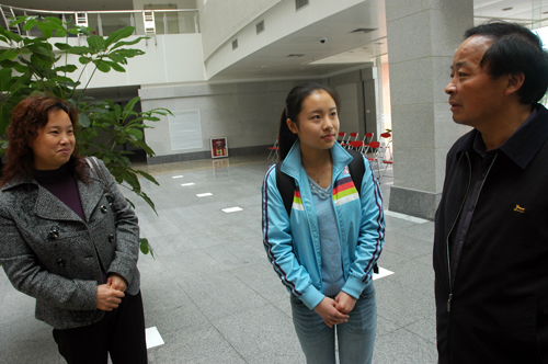 新闻学院院长郭光华(右一)与考生及家长亲切交谈
