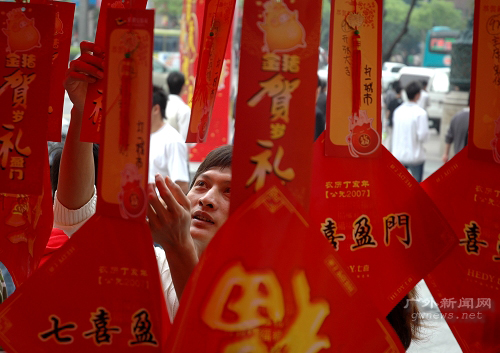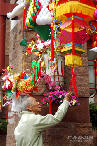 电脑城门前灯谜挂起一片,商家精明懂得元宵利市