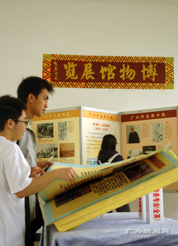 在现场,这次博博会筹备者之一——商英学院的郑泽仪同学向记者介绍道,这类富有历史知识和传统文化的展览对广外学子是大有裨益的。她还强调,这次活动还专门请来了博物馆的讲解员,他们会与商英学院的四个讲解队一起在本周一、二、四的人流高峰时段在现场为广大参观的同学进行讲解,使同学们能够更加深入地了解到这次展览的内涵。