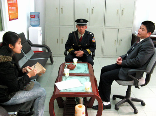 接受本网记者采访的时候,吴家雄显得很腼腆。在一旁的钟雄波科长连忙向记者介绍:“这就是我们校卫队捡到一万六千多块钱的小吴,他叫吴家雄。”而后,吴家雄才开始讲述在校卫队工作的情况和感受。据介绍,他到校卫队工作才两个月,以前在校外做水果生意。问及为什么会改行,他微笑着说,“在学校工作清静一点,心态也年轻一点,尽管每月的薪水不多,但我确实喜欢这份工作。”